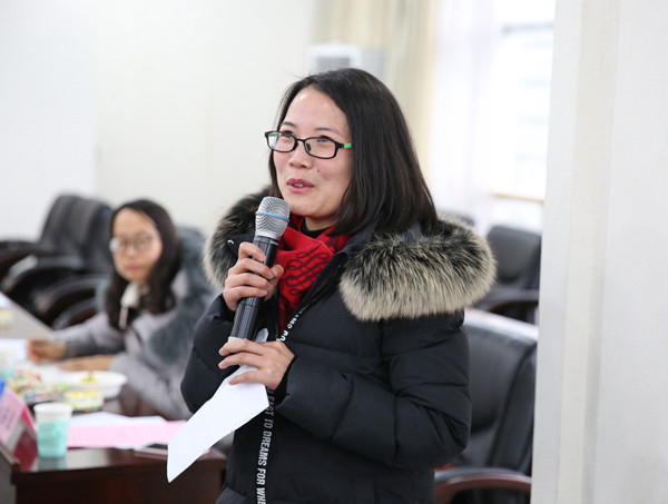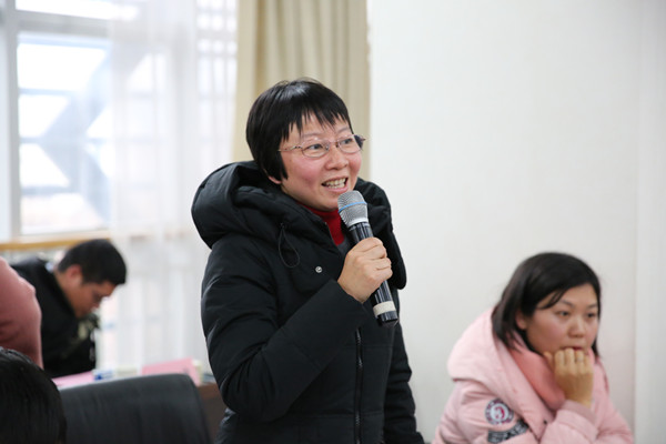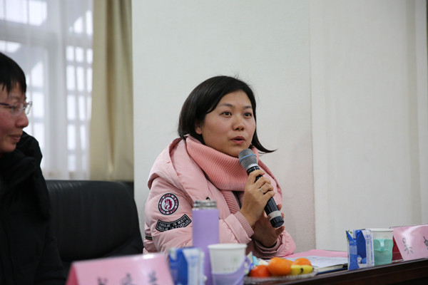 随后,王静作为2018年聘任教师代表第一个发言。她用发展、完善和公平三个词为学校专业技术职务改革点赞:以前评正高的要求如今想评副高都难,这体现了发展;评副高从不答辩到口头陈述再到PPT陈述,这是完善;统筹全校各学科各系列,推出最适合学校的专业技术职务晋升体系,这最大限度地体现了公平。