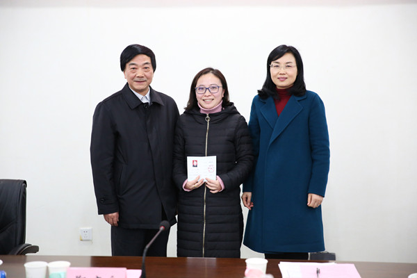 在张强宣读《关于本科专业教授岗位聘任结果的通知》和《关于聘任高级专业技术职务的通知》两份聘任文件后,校职称评审委员会主任郑有良、副主任庄天慧挨个到每个座位上,为参会教师颁发资格证书。并单独为我校首篇《Science》论文第一作者、水稻研究所认定性评审科研型教授王静颁发资格证书。