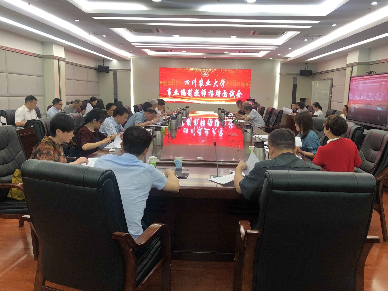 6月4日至6月5日,学校事业编制教师招聘面试会分别在雅安校区和成都校区举行。校领导、党委常委、校学术委员会负责人、教师工作部、教务处、研究生院、科技管理处、人事处及用人单位负责人担任考评组成员,校党委书记庄天慧担任考评组组长,校长吴德、副校长刘登才、校学术委员会荣誉主任荣廷昭担任副组长。