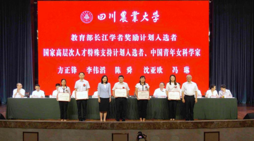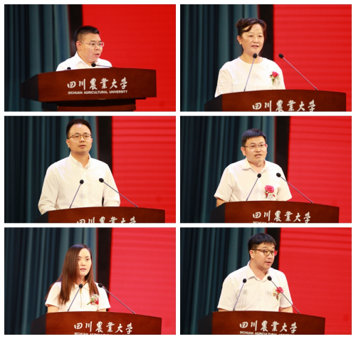 国家自然科学基金创新研究群体主持人、长江学者奖励计划特聘教授、国家杰出青年科学基金获得者、国家高层次人才特殊支持计划领军人才、享受国务院政府特殊津贴专家、四川省杰出人才奖获得者、师德楷模、学术和技术带头人、校学术委员会常务副主任、国家重点实验室主任陈学伟教授,全国脱贫攻坚先进个人、四川省天府青城计划领军人才、学术和技术带头人、园艺学院吕秀兰教授,在水稻基因变异研究领域取得突破性进展、顶尖学术期刊《Cell》发表学术论文第一作者、水稻研究所钦鹏教授,教育部长江学者奖励计划特聘教授、省学术和技术带头人、食品学院副院长(主持工作)方正锋教授,四川省天府青城计划入选者、经济学院何思妤教授,第七届四川省“高校辅导员年度人物”、学校优秀辅导员、动物医学院党委办公室主任、团委书记张廷宇老师先后发言。他们结合教学、科研、管理服务工作经历讲述了在各自岗位上的坚守和奋进,表示要在今后的教学、科研、管理岗位上,继续发扬“川农大精神”,继续保持进取心、责任心、感恩心,做“四有”好老师,创造新佳绩。