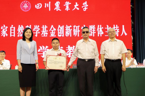 党委书记庄天慧教授、校长吴德教授、院士荣廷昭教授为国家自然科学基金创新研究群体主持人陈学伟教授颁奖