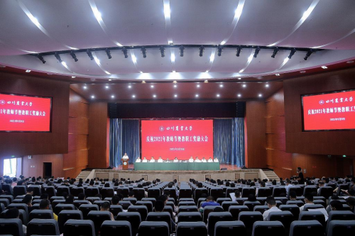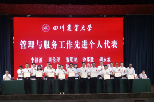 庄天慧表示,一年来,川农大人克服新冠疫情不利影响,心无旁骛努力拼搏,迎来金秋十月的满满收获。今年共有1271名教职工受到奖励,受奖人数占教职工总数的35%。这些数字,书写着川农大人传承创造的新篇章,蕴含着川农大人继往开来的新机遇。一年取得的成绩主要表现为四个新:学科平台建设有新突破、人才队伍建设有新成效、破除“五唯”机制有新进展、社会服务工作有新作为。庄天慧强调,所有这些“新业绩”都是全体川农大人撸起袖子加油干出来的,今天获得奖励的教职工就是“苦干实干顽强干”的典型代表。