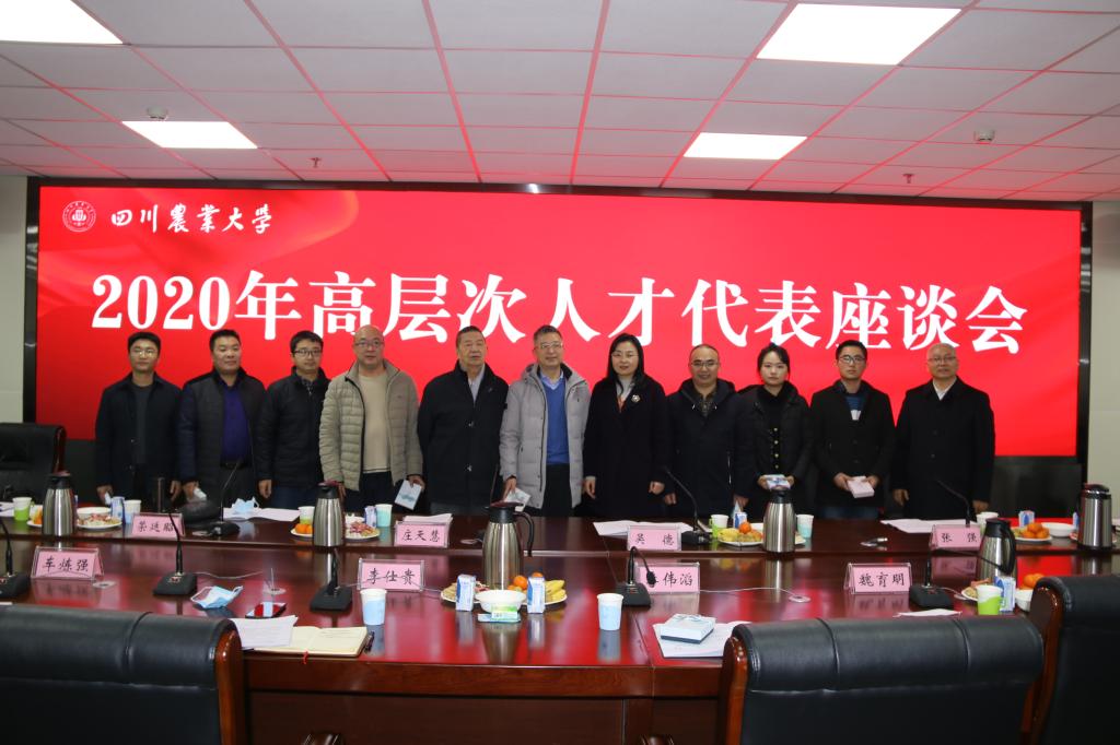 1月6日,学校在成都校区西康楼309会议室隆重召开2020年高层次人才代表座谈会。室外寒风阵阵,会场暖意融融,学校全体在家校领导与2020年新入选省级以上人才工程和新晋高级职称的70余位教师代表欢聚一堂,进行深入沟通交流,共同谋划推进学校人才工作,为建设一流农大注入更强动力。校党委书记庄天慧、校长吴德、中国工程院院士荣廷昭为新入选国家级和省级人才工程的教师颁发纪念品。庄天慧、吴德为新晋升高级职称教师颁发职称证书。